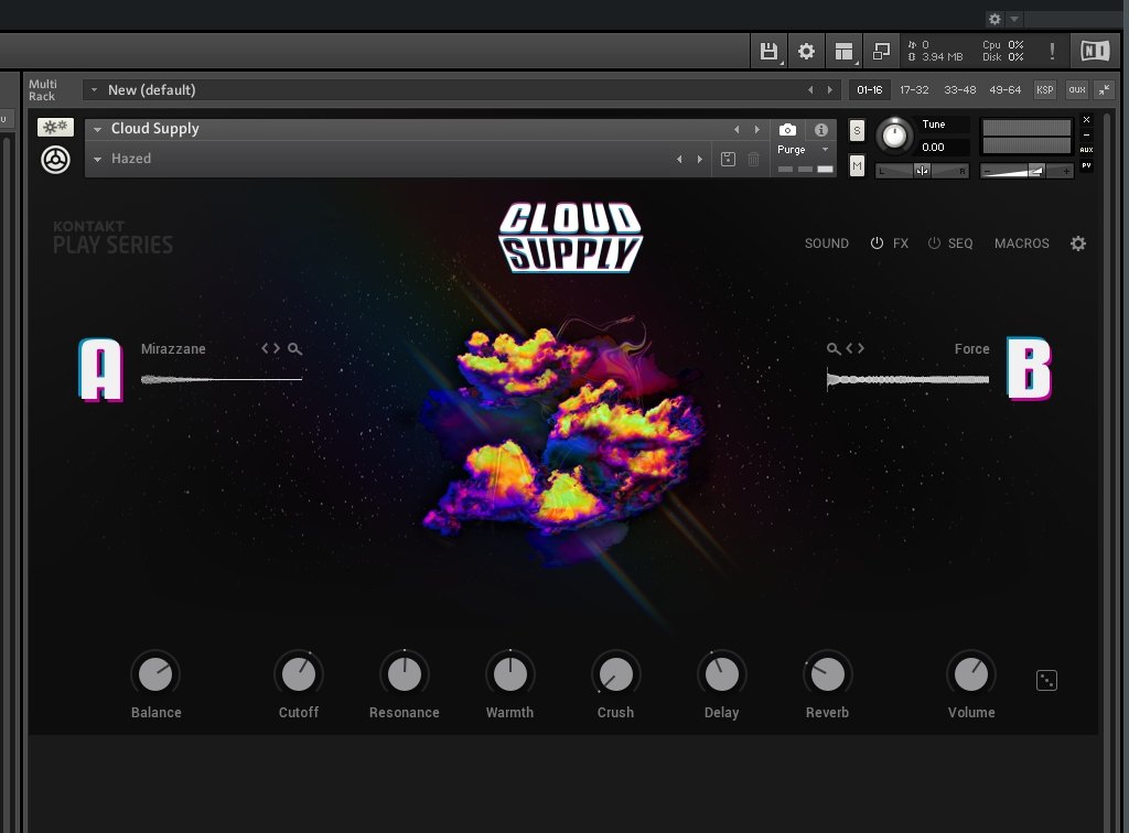 Cloud Supply beinhaltet 150 Keys-, Lead,- Mallet- oder Pad-Presets, die im wahrsten Sinne des Wortes abgespacet klingen. Jedes Preset besteht zudem aus bis zu zwei Sounds, die nach eigenem Wunsch gelayert werden können. Zwei LFOs pro Sound, eine umfangreiche Effekt-Sektion und ein Arpeggiator mit 16-Steps machen Cloud Supply zum vollständigen Space-Synth. Außerdem gibt es eine Randomize-Funktion, die sich selbstständig ganze Presets einfallen lässt.