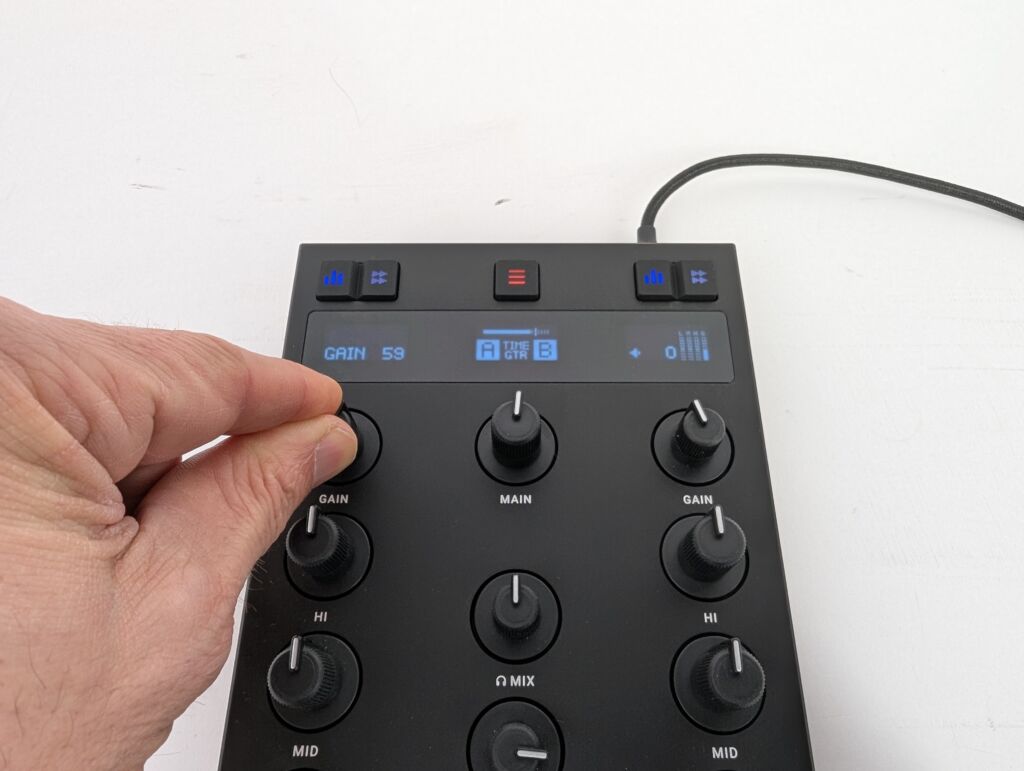 Im Standardmodus dient der Z1 MK2 Traktor zur Steuerung der Mixerfunktionen in Deck A und B. Die Drehregler sind hierfür praxisgerecht dimensioniert und erlauben eine feinfühlige Veränderung der Parameter. Gut gefallen hat uns auch, dass der jeweilige Parameter-Name und Wert im OLED-Display angezeigt wird, sodass man hier zielgerichtet arbeiten kann, ohne einen Kontrollblick in die Software werfen zu müssen.