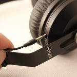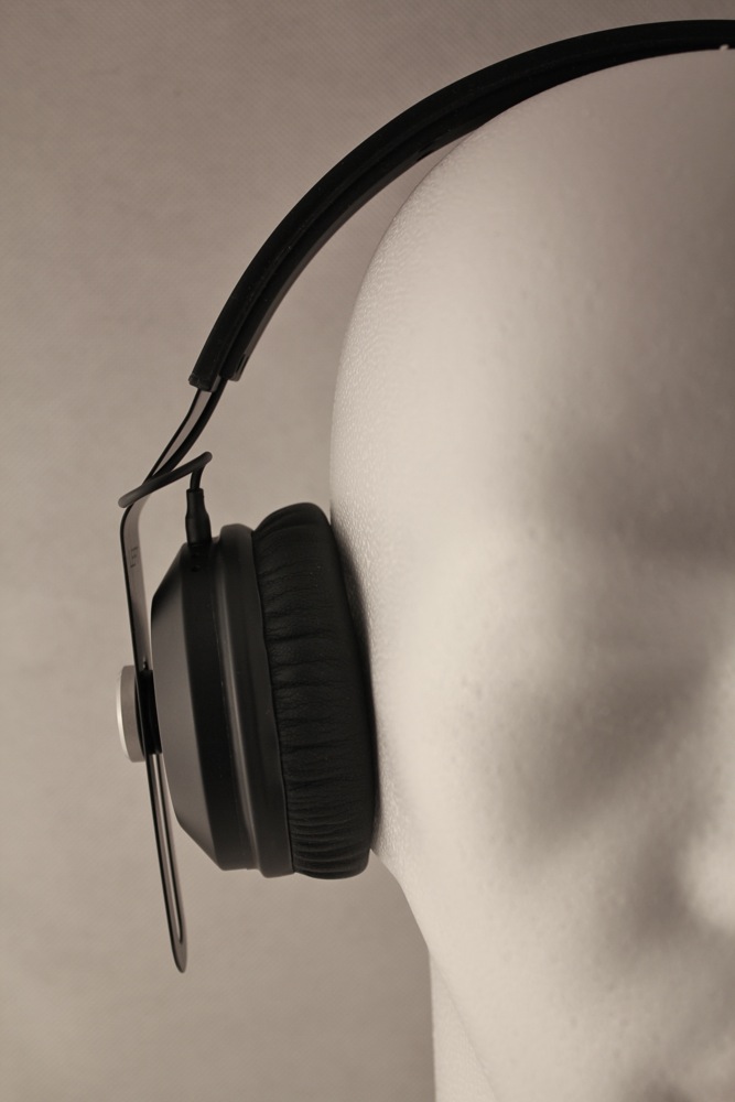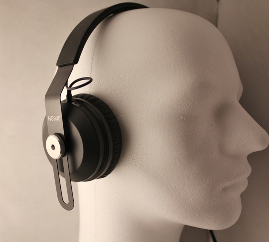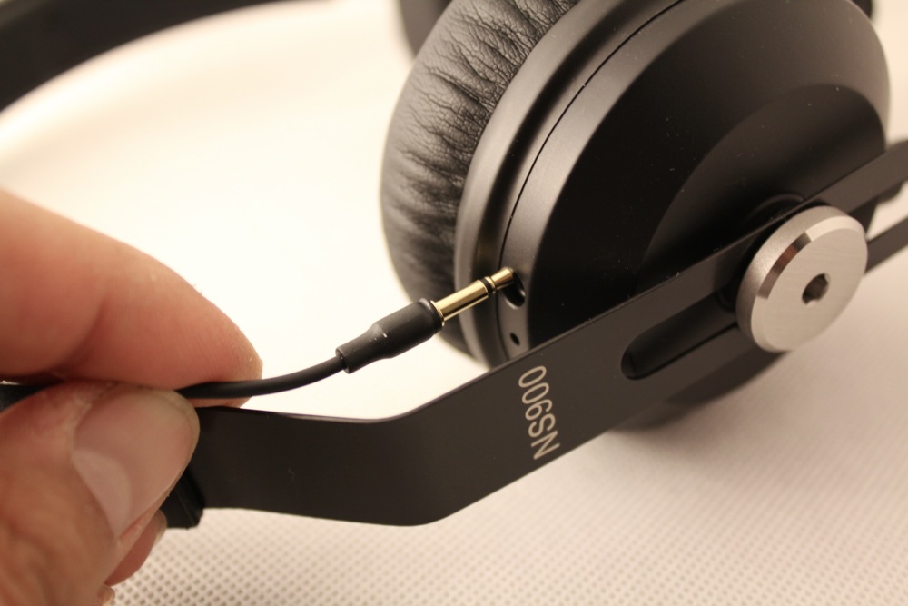 Der NS900 besitzt ohraufliegende Höhrermuscheln, die mit einem Kunstlederüberzug ausgestattet sind. Ein Ersatzpaar ist nicht im Lieferumfang enthalten. Die Befestigung der Ohrpolster ähnelt der des HD-25, d.h. sie sind mit einem Band über den Treiber gestülpt. Der Wechsel der Ohrpolster kann damit zwar in angemessener Zeit erledigt werden, aber die innovativste Variante ist es nicht. Die Kopfhörermuscheln sind auf einem Metallbügel gelagert und mit großen Inbusschrauben daran befestigt. Dadurch lassen sie sich in der Höhe verstellen oder auch komplett arretieren. Einen Inbusschlüssel vermisst man aber im Lieferumfang. Der Metallbügel ist seitlich offen und an der Aufliegefläche mit einem Gummiüberzug versehen, der auf der Innenseite eine versteckte Kabelführung ermöglicht. Die innen liegenden Anschlüsse sind mit kleinen Klinkensteckern ausgestattet, was den Wechsel eines Treibers ohne Fummeleien zulässt. Die verschiedenen Kopfhörerkabel können jeweils mit einem Mini-Klinken-Bajonett-Verschluss an einer Ohrmuschel befestigt werden.