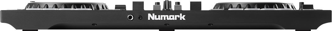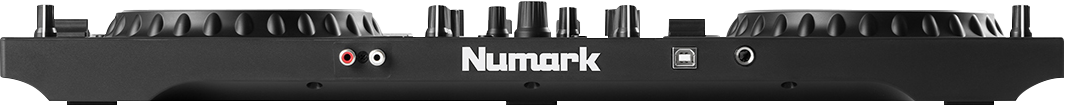Der Numark Mixtrack Platinum FX ist auf der Rückseite mit einem Cinch-Paar zur Ausgabe des Mastersignals ausgestattet und verfügt über einen Mikrofoneingang in Form einer Klinkenbuchse. Eine USB-Buchse erlaubt den Datenaustausch mit einem Windows-Computer oder Mac und auf der Vorderseite befinden sich 3,5mm- und 6,3mm-Anschlüsse für Kopfhörer. Die interne Soundkarte arbeitet mit 44,1 Kilohertz und 24 Bit.
