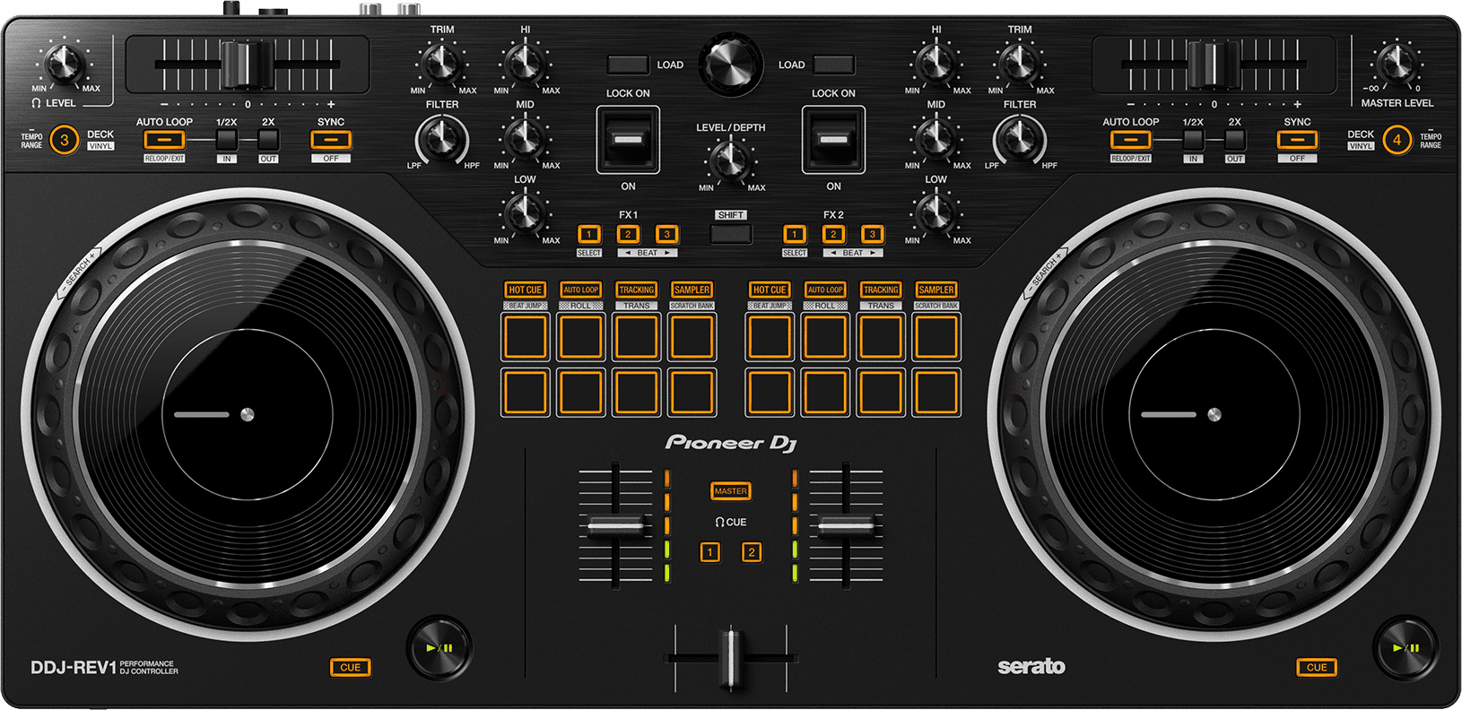 Der Pioneer DJ DDJ-REV1 ist für ein kreatives Mixing ausgelegt und bietet einen unverbauten Zugriff auf die Jogwheels, Effekte und Performancepads. Die Wheels reagieren sehr feinfühlig auf Anwendereingaben und erlauben das Ausführen von Scratch-Manövern. Wer diese Technik ohne umfangreiche Übungssessions anwenden will, kann sich durch den Pad-Modus „Tracking“ unterstützen lassen, der verschiedene Crossfader-Bewegungen simuliert.