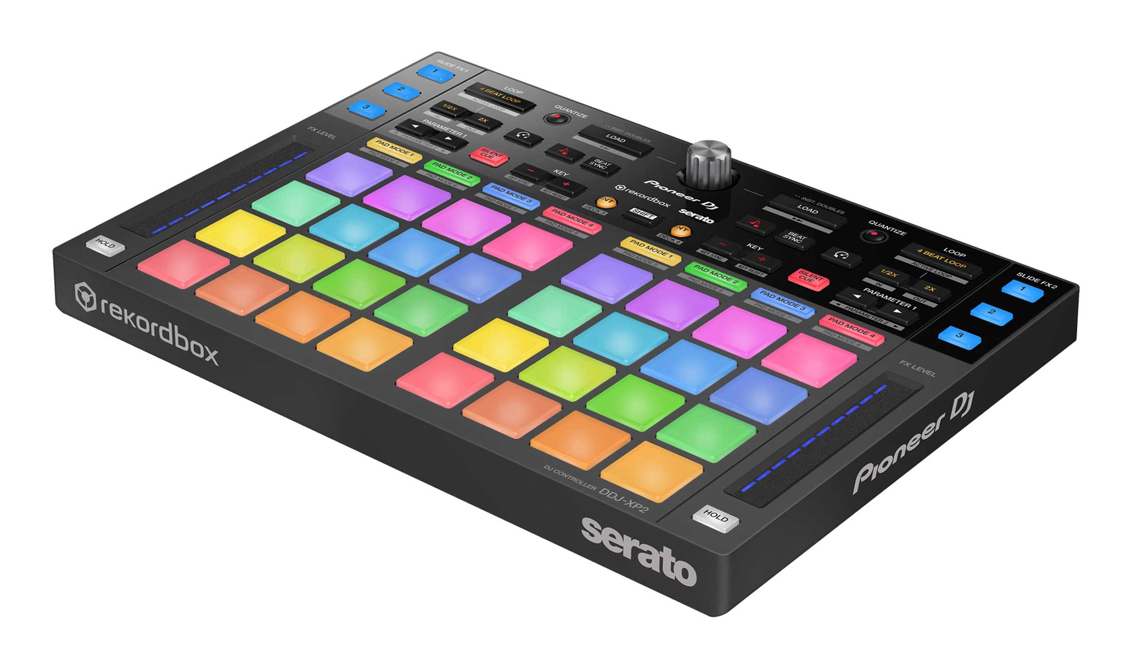Wird der DDJ-XP2 an einen Computer mit einem installierten Serato DJ Pro System angeschlossen, so verfügt dieser über drei Belegungsebenen für die Pads, die zudem vielfarbig beleuchtet sind. Die beiden ersten Ebenen sind ab Werk vorbelegt, die dritte Ebene ist für selbst wählbare Steuerungen vorgesehen, die per MIDI-Editor in der Software konfigurierbar sind.