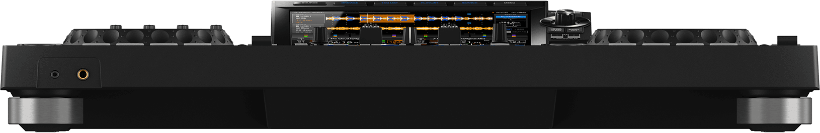 Der Pioneer DJ XDJ-RX3 ist mit einem riesigen 10,1-Zoll-Touchscreen ausgestattet. Der Bildschirm ist gestochen scharf und liefert sehr viele Infos, die auch aus größerer Entfernung sehr gut ablesbar sind. Die verschiedenen Anzeigeninhalte lassen sich durch Taster oberhalb des Screens umschalten und beinhalten Datenträgerauflistungen, Songsammlungen, Suchfunktionen und Geräteeinstellungen. Im Mixbetrieb erscheinen große, farbige Detail- und Übersichtswellenformen, umfassende Songinformationen sowie der gewählte Pad-Modus inklusive der Funktionsbelegungen oder die Beat-Fx-Parameter.
