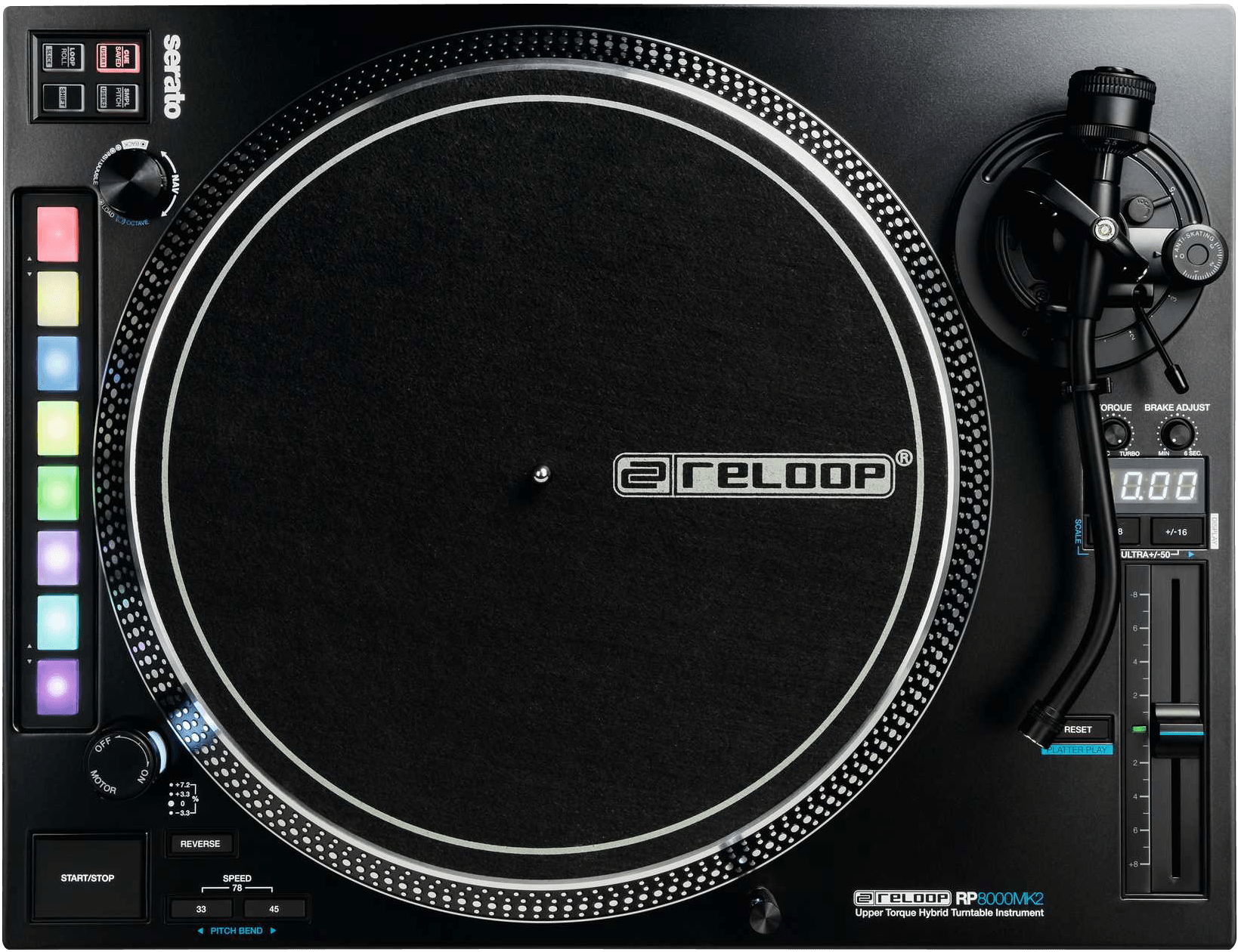 Reloop bringt mit dem RP-8000MK2 einen soliden Turntable in die Läden, der sowohl als reiner Plattenpieler als auch in Sachen Performance-Instrument überzeugt. Die Verarbeitung ist auf hohem Niveau und dank des neuen Tonarmsets bleibt die Nadel auch bei harten Scratchmanövern dort, wo sie sein soll – in der Rille. Das flexible Drehmoment des Motors macht den RP-8000MK2 sowohl für reine Mix DJs als auch für Turntablists gleichermaßen attraktiv. Die MIDI-Sektion ist für Cue-Punkt-Aktionen, Loops, Sampler und Trackbrowsing sehr gut geeignet. Die Anordnung und die Doppelbelegungen sind intuitiv erlernbar. Für die Steuerung von Software-Effekten gibt es leider keine Drehregler. Auch wenn der RP-8000MK2 von Haus aus auf Serato DJ Pro ausgelegt ist, ist er in meinen Augen grundsätzlich ein interessanter Plattenspieler für jegliche MIDI-fähige DVS-Software. Bei einem Preis von ca. 570 Euro bekommt man von Reloop für den RP-8000MK2 ein sehr gutes Preis-Leistungs-Verhältnis, welches um Längen besser ist, als z. B. das eines Pioneer PLX-1000.