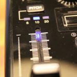 Der Pitchbereich des Resident DJ 3 beinhaltet einen 60mm Fader ohne Mittenrastung, dessen Faderkappe wesentlich dünner ist und höher liegt, als die der anderen Fader. Als einzige Orientierung für eine Nullstellung des Faders gibt es eine Scala auf der Faceplate. Der Blick auf die Software ist auch hier der sichere Weg, wenn man nicht mit Autosync synchronisiert. Oberhalb des Pitchfaders kann man schrittweise, in eine Richtung, den Pitchbereich zwischen den Werten 6,10,20 und 50% verändern.