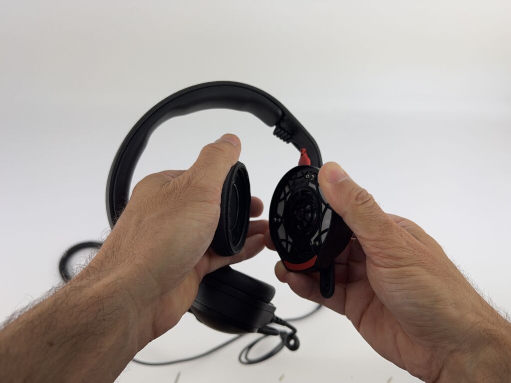 Zum Ersetzen oder Reinigen der Ohrpolster oder des Kopfbands können diese werkzeuglos abgenommen werden. Die Ohrpolster lassen sich durch beherztes Ziehen von der Ohrmuschel lösen. Das Kopfband ist hingegen über Clips befestigt und sollte daher etwas vorsichtiger behandelt werden. Schwierig oder aufwändig ist das alles nicht.