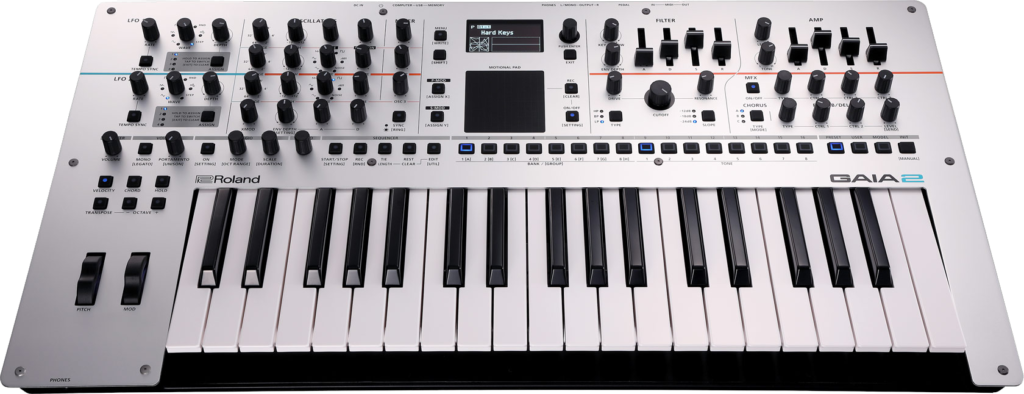 Der Gaia 2 verfügt über insgesamt drei Oszillatoren. Nummer zwei und drei sind jeweils identische Digital-Emulationen klassischer Roland-Oszillatoren und beherrschen die Wellenformen Sinus-, Dreieck-, Sägezahn-, Rechteck-, Rausch- und Supersäge-Wellenformen. Bereits die Kombination dieser beiden Syntheseformen eröffnet einen ganzen Kosmos klassischer Synth-Sounds.