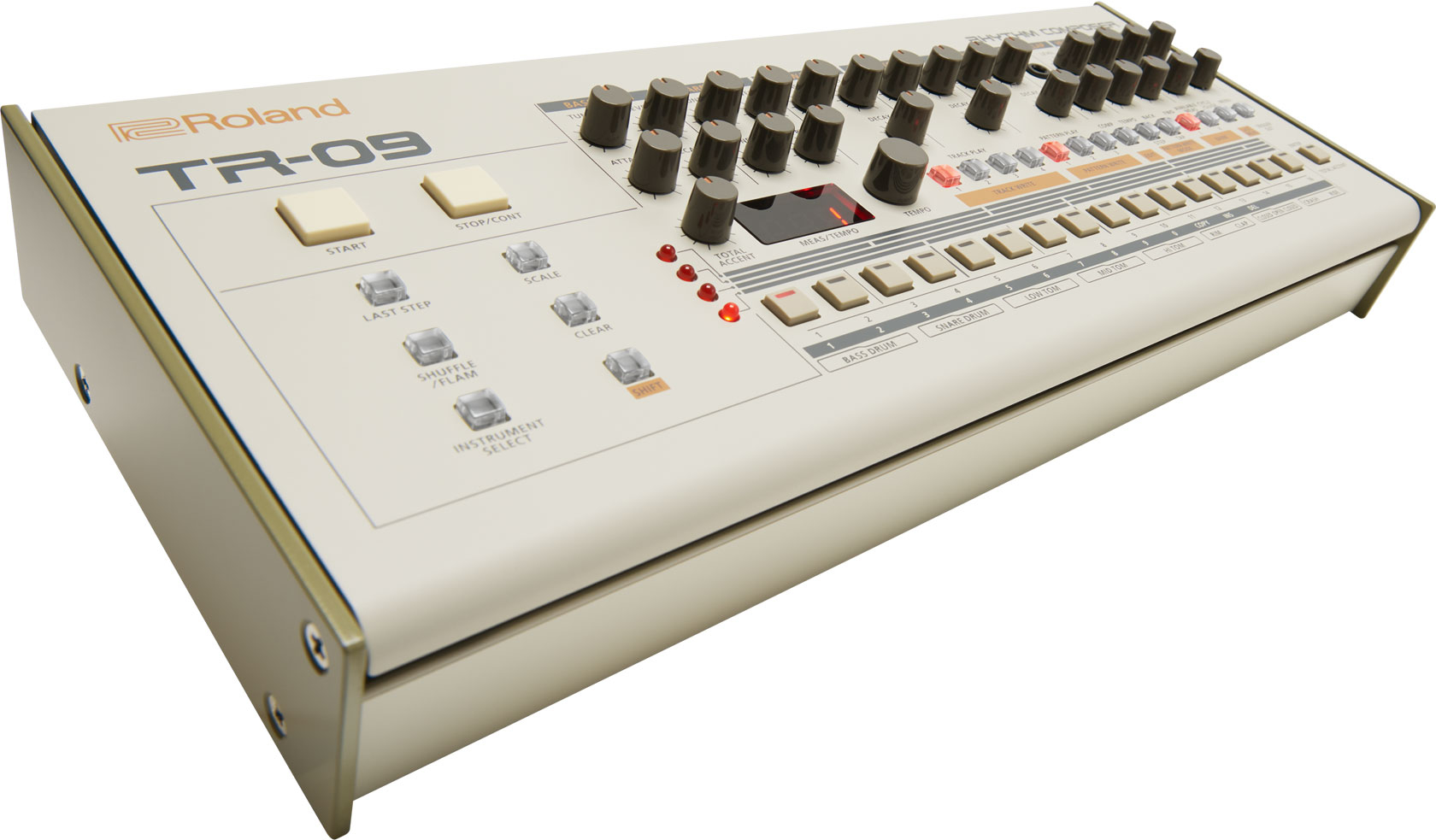 Die seit Oktober 2016 erhältliche TR-09 aus der Roland Boutique-Serie ist eine optisch geschrumpfte Re-Produktion der klassischen Roland TR-909. Die Sounds des beliebten „Rhythm Composer“ aus den frühen 80ern haben vor allem Genres wie House und Techno grundlegend mitgeprägt. Mit diesem Produkt bietet der japanische Hersteller eine moderne Ausgabe des Kult-Gerätes an, die wie der Großteil der Boutique-Serie, auf der ACB-Technologie basiert. Der Funktionsumfang des Instruments entspricht fast eins zu eins dem Vorbild, jedoch ist die Neuauflage um zusätzliche Features erweitert worden.