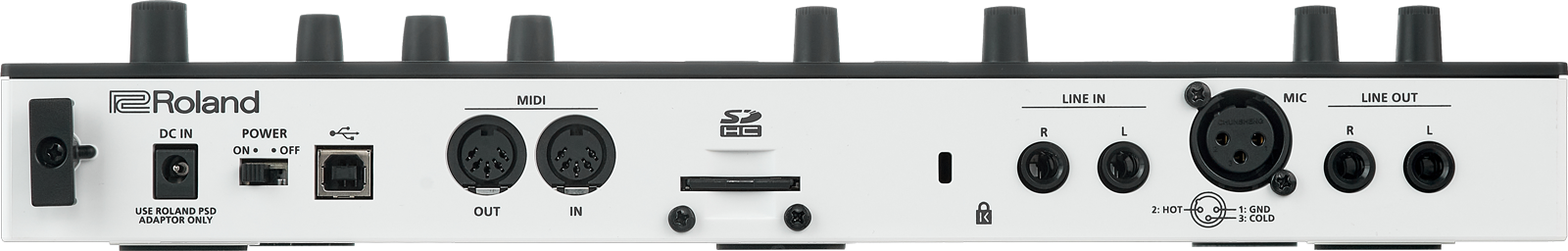 Klar, hier sollten nicht zu hohe Erwartungen an die Klangqualität gestellt werden, aber gerade in Kombination mit dem Fliegengewicht von 1,17 kg und den optionalen Akkus für unterwegs ist die MV-1 absolut portabel. Die Anschlusssektion auf der Rückseite beherbergt Line Ins und Outs (L/R) im 6,35mm-Klinkenformat, einen XLR-Anschluss, MIDI In und Out nach DIN-Norm, einen SD-Kartenslot, USB-B-Eingang und DC-In. Im Lieferumfang enthalten sind ein Quick Start Guide, das passende Netzteil und eine SD-Karte.