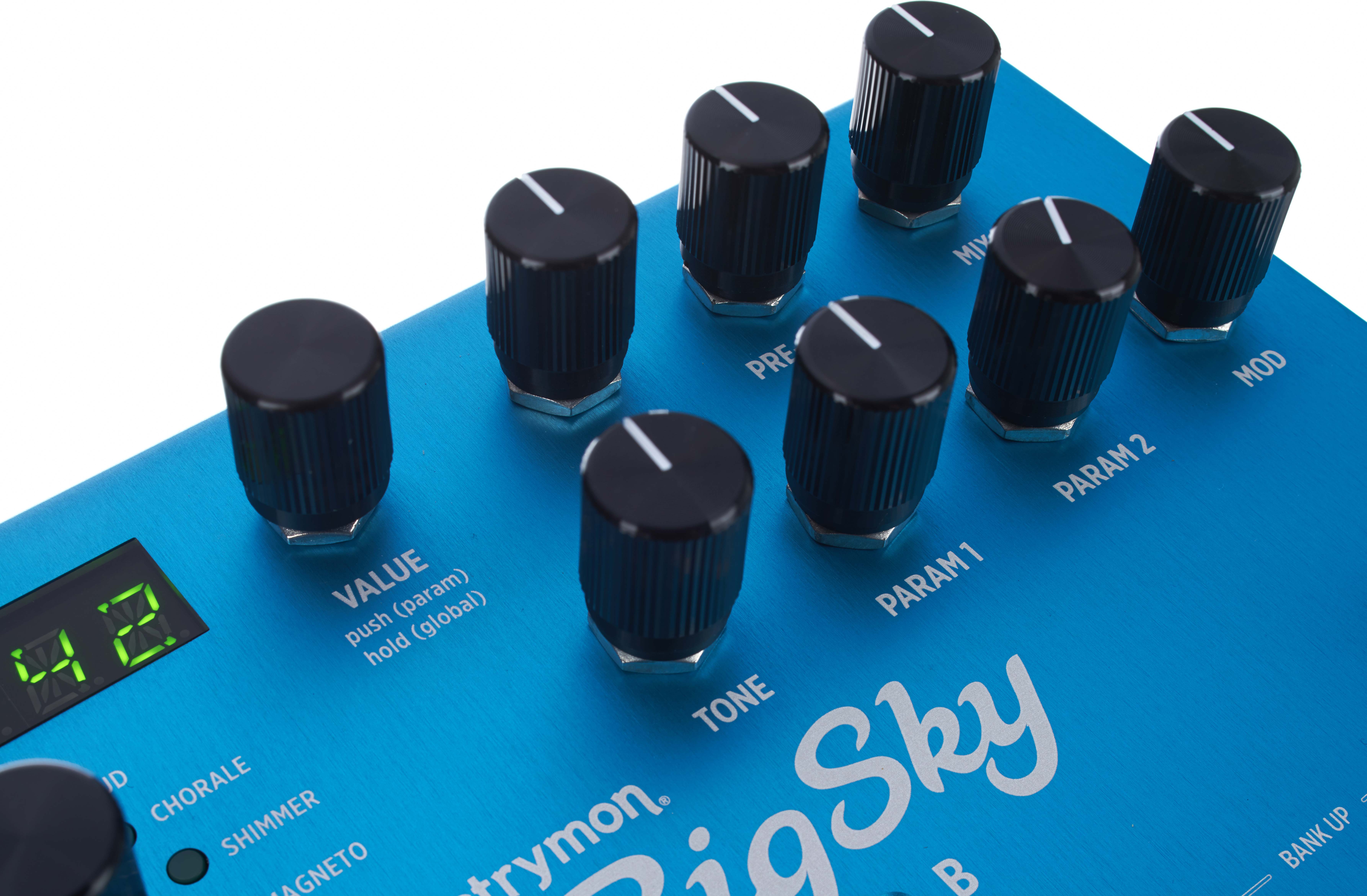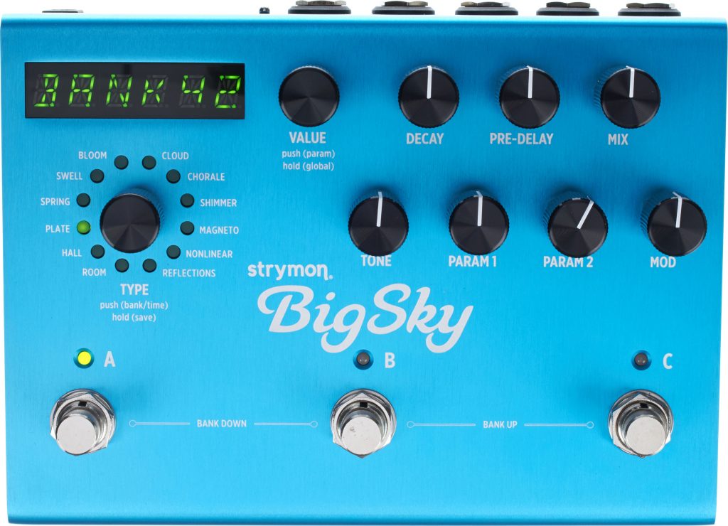 Bereits die Standard-Reverbs Room, Hall und Plate überzeugen durch einen glasklaren Klang, den es bis dato in keinem Pedal der Konkurrenz zu finden gab – höchstens beim Vorgänger Bluesky. Dieser punktete aber nicht mit realistischen Raum-Emulationen, sondern mit langen Decay-Zeiten und dem Shimmer Reverb. Erstmals frei von digitalen Artefakten oder hörbaren Pitchshifts legte der Bluesky eine orchestrale Wolke unter das Spiel und machte Ambient Guitar zur konjunkturförderndsten Online-Suchanfrage des Business.