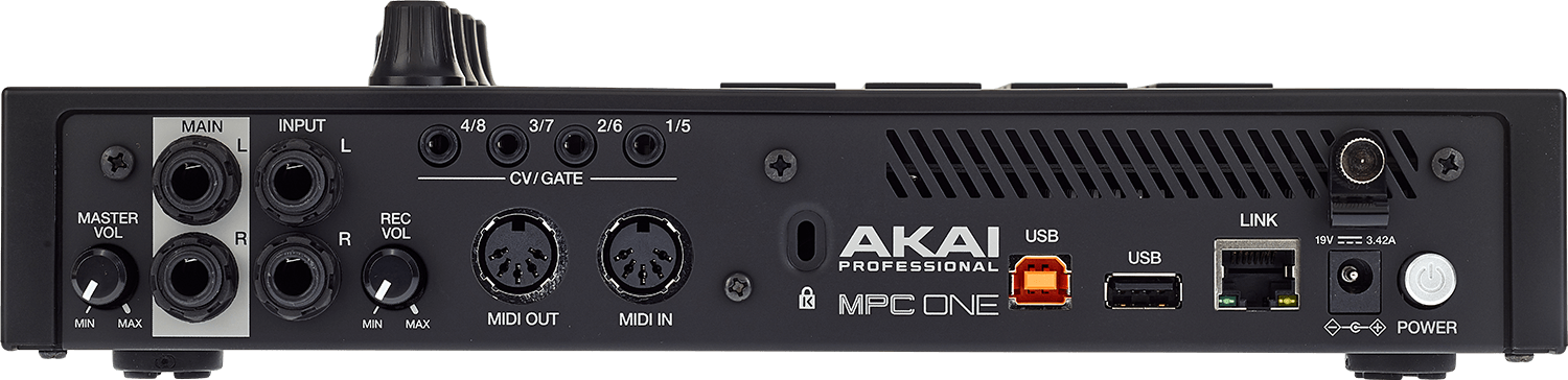 MPC One verfügt lediglich über zwei 6,35mm-Klinkeneingänge zum Samplen und Loopen externer Audiosignale. Bei der MPC X gab es zusätzlich Phono-Inputs, XLR/Klinke-Kombibuchsen und sogar acht separate Audioausgänge, bei der One muss man mit Stereo-Ausgängen für den Master vorliebnehmen. Ein weiteres wichtiges Feature der MPC X sind die acht CV-Ausgänge im 3,5mm-Klinkenformat, die die Kommunikation mit allerlei Vintage Gear ermöglichen. Akai erkennt die Vorteile dieser Eigenschaft offenbar an und hat auch bei der MPC One acht CV-Ausgänge verbaut – Wow!