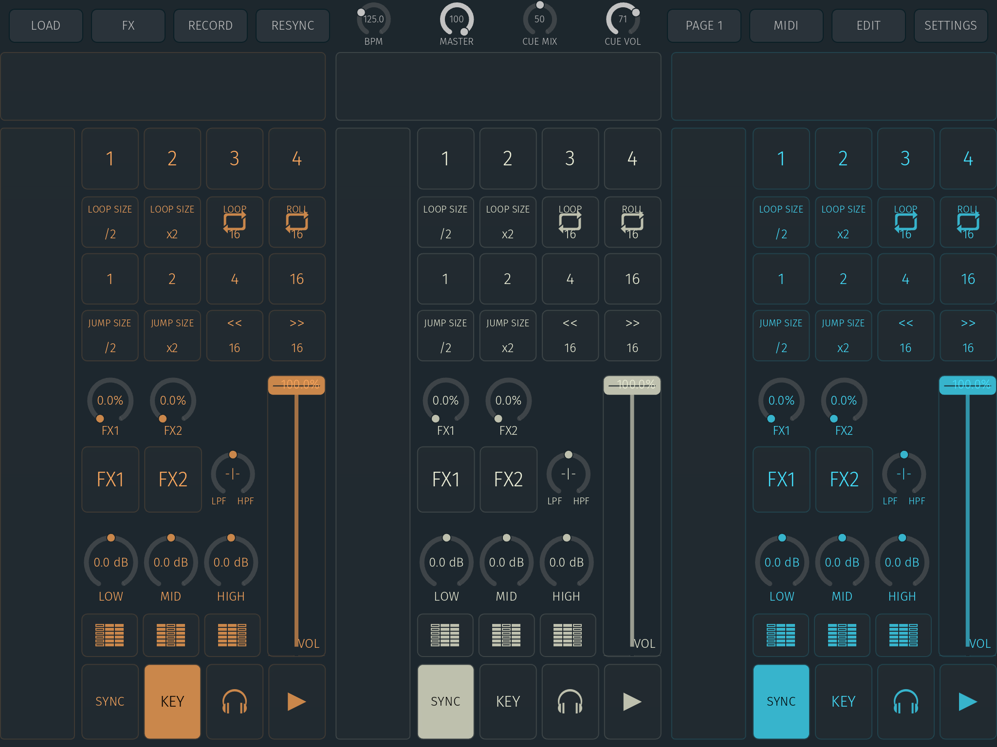 Wer mit mehr als zwei Decks auflegen möchte, sollte auch über den Einsatz eines Controllers nachdenken, da die virtuellen Bedienelemente mit zunehmender Deckanzahl immer kleiner werden.