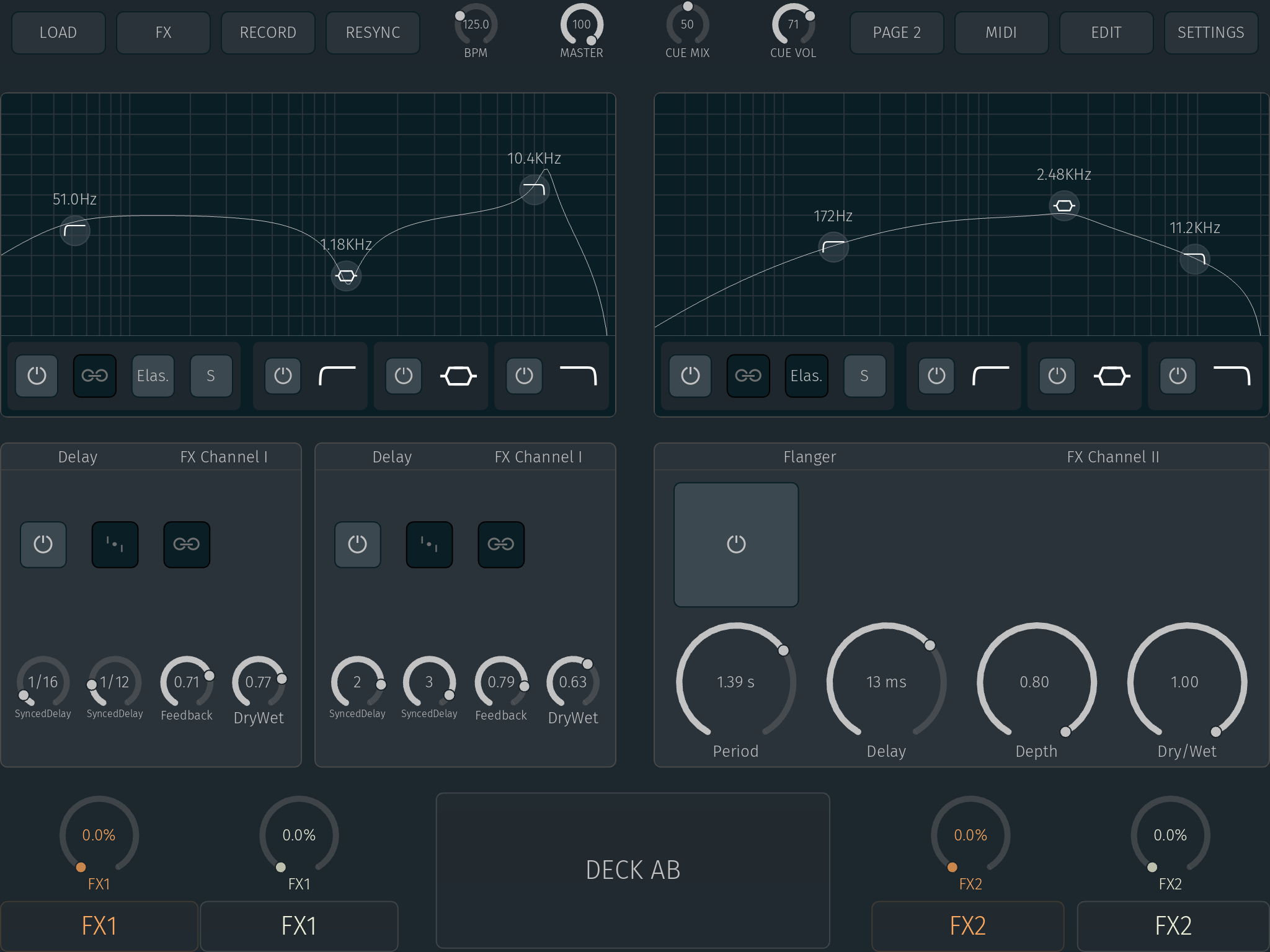 Die automatische Sync-Funktion arbeitet zuverlässig und funktioniert auch mit mehr als zwei Decks. Die Synchronisation erfolgt, anders als in vielen Apps nicht von Deck zu Deck, sondern zu einer zentralen Masterclock. Darüber hinaus lässt sich auch die Funktion Ableton Link aktivieren und ein Gleichklang mit Programmen wie Ableton Live, Traktor Pro, Serato Pro oder Maschine auf einem Computer herstellen. Diese Option erlaubt eine einfache Setup-Erweiterung oder das Auflegen als DJ-Team.