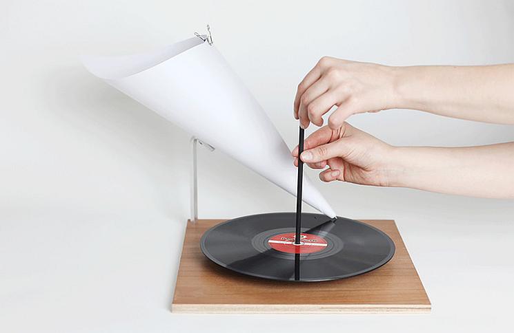 Inspiration könnte Kid Koala geliefert haben. Der kanadische Turntablist veröffentliche sein Album "12 bit Blues" (Ninja Tune 2012) inklusive einem Plattenspieler-Bastelbogen. Zusammengefaltet konnte der eine beiliegende Flexidisk abspielen. Gibt es bei Discogs für etwa 50 Dollar.