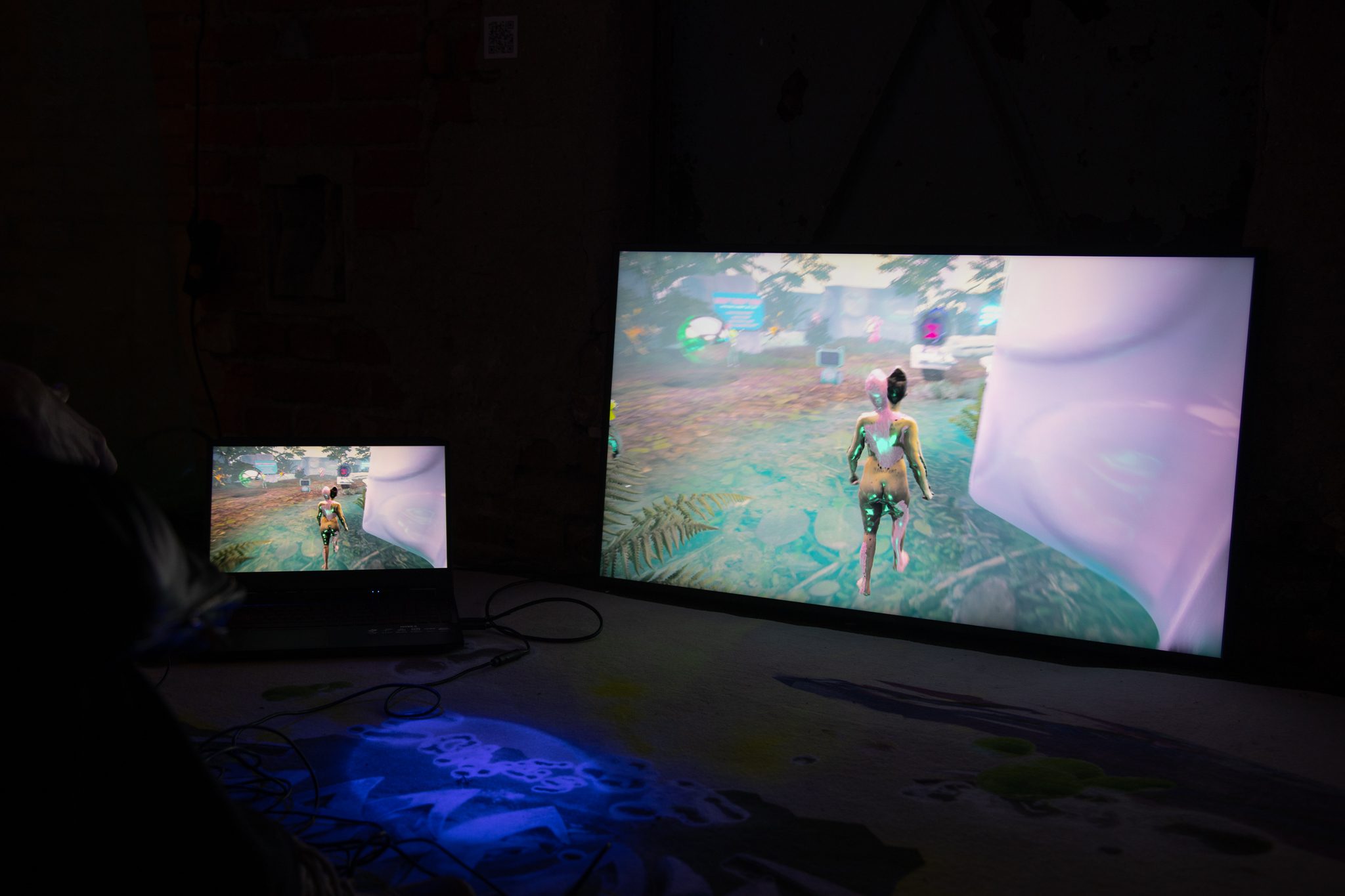 In der Konzertlocation, einem historischen Kinosaal im Süden von Leipzig, wurden Birthcore, BBB_, Nazar und Namasenda allesamt frenetisch bejubelt. Absolut herausragend war die Performance von allapopp und Alex Sahm, die ihr neues Album „Songs of Cybergeoisie“ vorstellten. allapopp schritt dabei anfangs durch die Menge im Saal, jede ihrer Bewegungen wurde live über Sensoren an ihrem Körper getrackt. Auf der Bühnenleinwand konnte das Publikum in Echtzeit die Fusion von Alla und den Figuren des Videospiels beobachten.