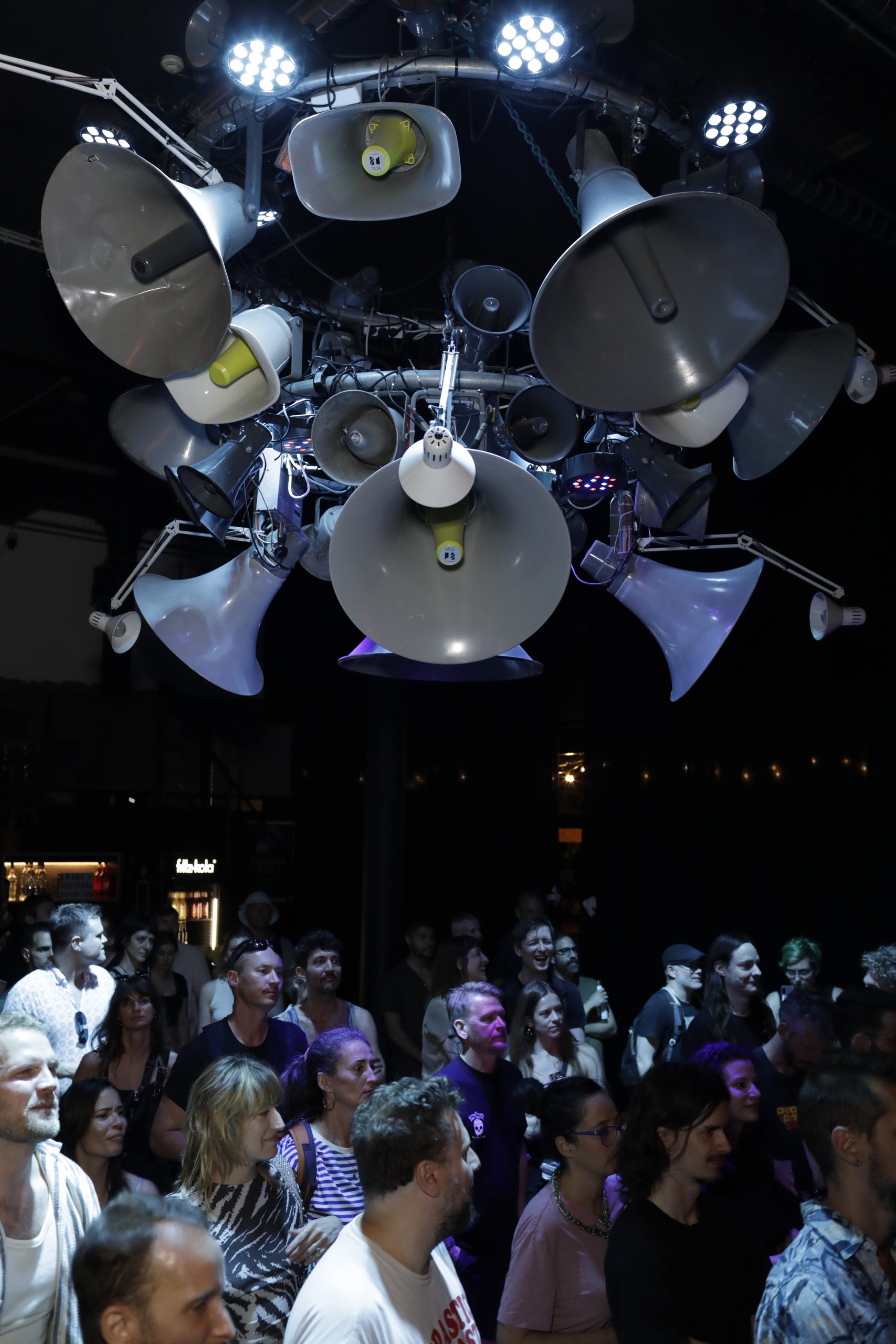 Das Krake Festival will dem an diesem Abend und insgesamt eine Durchlässigkeit entgegenstellen, die durch die Lage des House of Music in der abgelegensten Ecke des RAW-Geländes trotz Fête de la Musique nicht unbedingt begünstigt wird. Doch immer wieder verirren sich Menschen dorthin, schauen sich um und lauschen kurz dem Treiben auf der Bühne. Die meisten gehen irgendwann wieder, viele andere bleiben eisern vor Ort, weil sie eben wegen dieses Events, des dahinterstehenden Gedankens und des Programms gekommen sind.