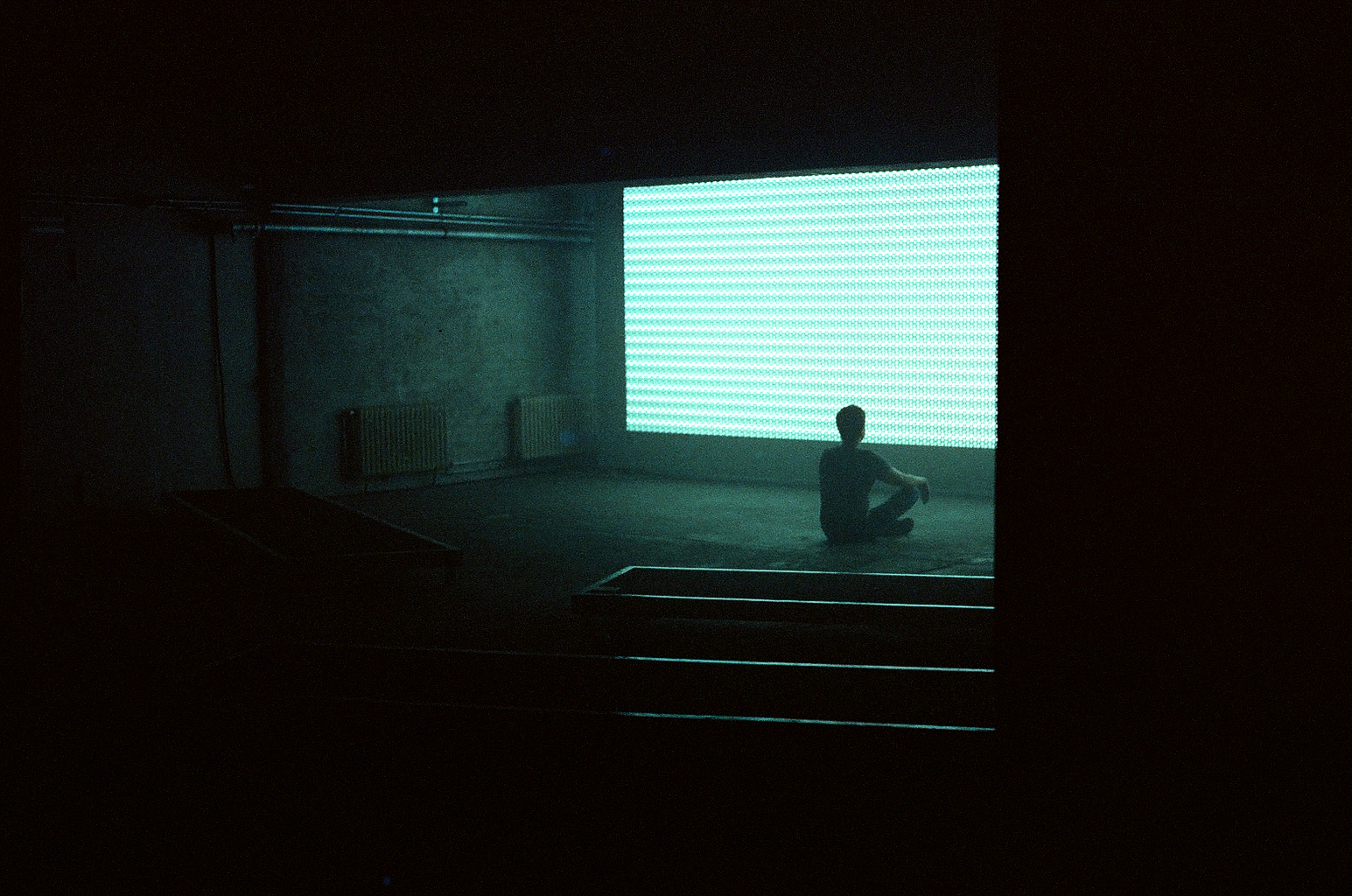 Dort hingegen war eine mehrkanalige Soundinstallation von Pan Daijing zu hören, in einen Ecke stand ein mit einem kleinen Scheinwerfer angeleuchteter Eisblock, leise vor sich hinschmelzend. So gestaltete sich der unbeeindruckende Auftakt einer beeindruckenden Reise, die nach einem Gang durch die legendäre und ebenfalls stockdustere DJ-Booth in Teile des Gebäudes führte, welche zuvor nie der Öffentlichkeit zugänglich gewesen waren.