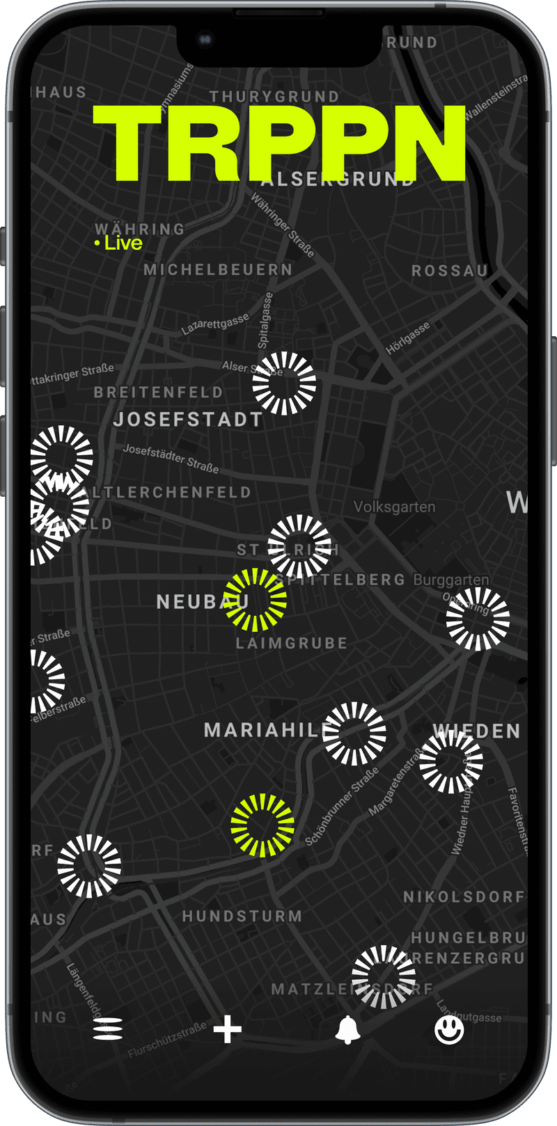Eine Alternative sei längst überfällig. Auch weil Facebook-Veranstaltungen längst unbrauchbar seien, sagt Sascha Aringer vom Technokollektiv Ananas. „Früher konnte man als Veranstalter:in damit halbwegs kalkulieren, wie viele Leute man tatsächlich auf der Veranstaltung erwarten können wird. Heute funktioniert das gar nicht mehr“, so Aringer. Weil Trppn aber die Publikumsdichte in den Clubs anhand von Angaben der User live erheben will, könne entsprechend gezielt geplant werden – ohne ein Risiko einzugehen. Der Wiener Veranstalter und DJ zieht auch den Vergleich zu einer anderen App, die sich vor einigen Jahren in den Veranstaltungssektor drängen wollte: Bloom. „Damit konnte man spontan Events teilen. Allerdings war sie für den Clubbereich eingeschränkt brauchbar, weil sich jede:r Nutzer:in einfach [auf einem nicht öffentlichen Event] taggen konnte – gerade Leute, die illegale Raves veranstalteten, waren nicht gerade glücklich damit“, so Aringer. Mit Trppn sei die Situation anders. Zwar könne man sich theoretisch als Host definieren und eine Veranstaltung angeben, allerdings nicht mit einem Klick. „Die Barriere, einfach einen Rave zu taggen, ist dadurch viel höher.“