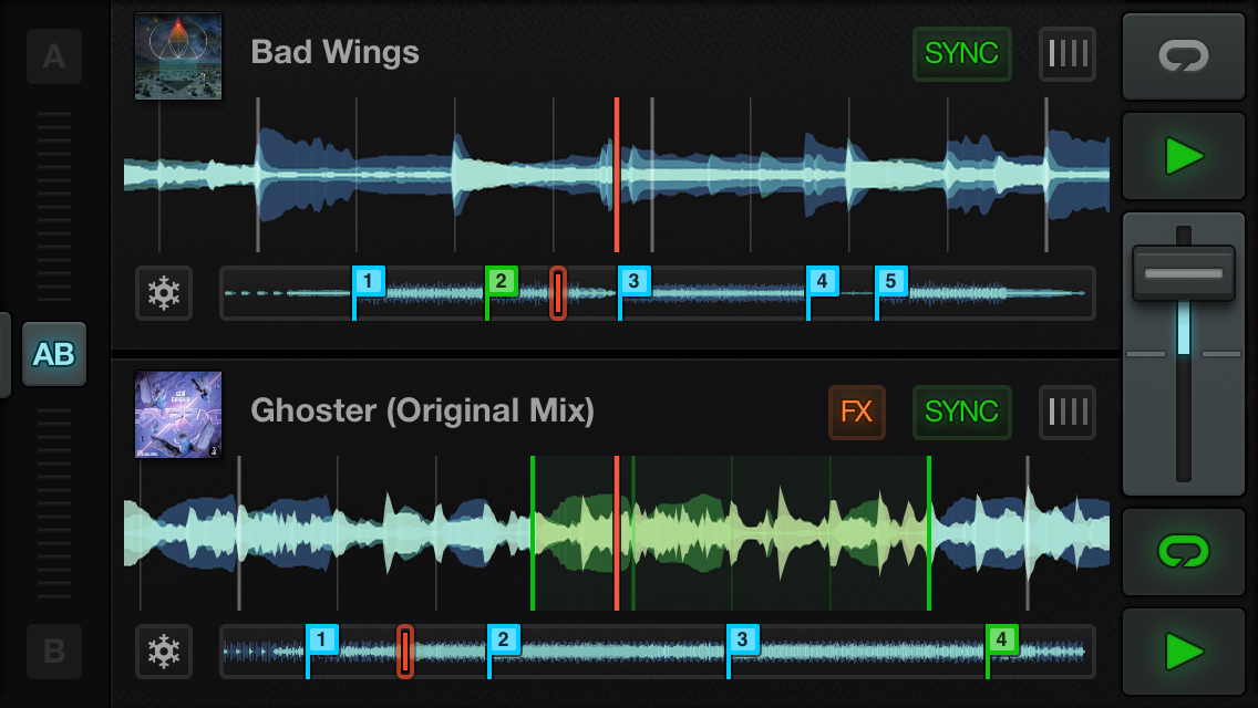 Die französische Softwareschmiede Mixvibes bietet mit der kostenlosen App Cross DJ  eine Möglichkeit, die ersten Schritte auf einem Mobilgerät zu testen. Man kann dabei Songs aus dem internen Gerätespeicher laden oder auf den kostenpflichtigen Streamingdienst SoundCloud Go zugreifen. Die App gibt es für iOS und Android und bietet rudimentäres Zwei-Deck-Mixing mit zwei Effekten, einem 3-Band-EQ und Loops. Eine BPM-Erkennung und Autosync mit Phasenmeter sind inklusive, sodass die ersten Gehversuche damit erledigt werden können. Die Decks werden als drehende Schallplatte angezeigt, wobei sich die Anzeige je nach Ausrichtung des Gerätes auf ein oder zwei Decks verändert. Es gibt auch eine kleine Gesamtansicht der Tracks, um darin zu scrollen.