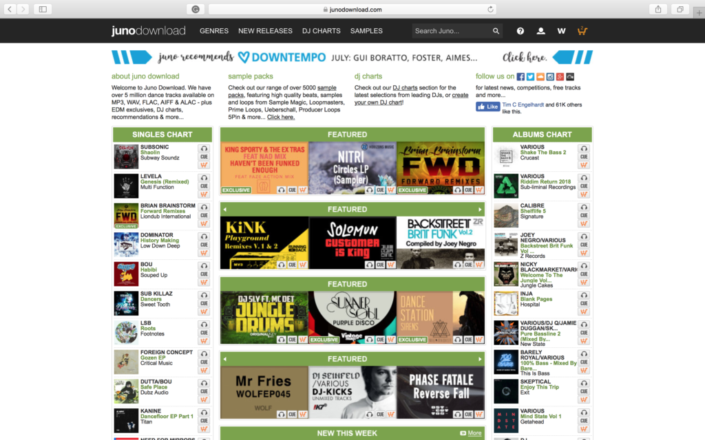 Juno Download wurde 2006 gegründet und ist eine eigenständige Plattform des bekannten, britischen Vinyl-Online-Shops Juno Records. Mit mehr als über fünf Millionen Tracks im Portfolio ist Juno Download für DJs eine naheliegende Beatport-Alternative. Mit den Audio-Formaten MP3 in 192 oder 320 kbps, WAV, FLAC, AIFF und ALAC deckt der Service verglichen zu Beatport sogar eine größere Format-Range ab.