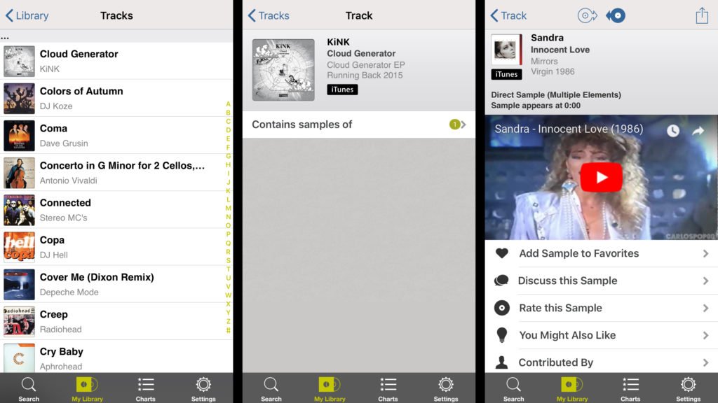 Für solche Aha-Erlebnisse scheint WhoSampled gemacht zu sein. Mit der für Android und iOS erhältlichen App können Spotify, Apple Music, iTunes und/oder die eigene mobile Library gescannt werden, um "die DNA der eigenen Musik zu entdecken". Nach dem Vorgang lässt sich dann nämlich einsehen, welche Samples in den bekannten Track stecken. Bei Remixen wird noch das Original verlinkt, auch wird das Cover angezeigt. Das funktioniert alles easy und intuitiv.